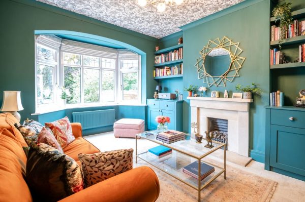 Two matching rattan floor to ceiling wardrobes with oak drawers in F&B’s Tallow. Hannah wanted rattan but the sheer nature of the rattan didn’t appeal to her so to prevent this we fitted a back panel to the doors, now once the doors are closed everything is hidden. Then incorporating the natural warmth colours of the rattan, on the bottom we have the grain matching running through the oak veneer drawers.